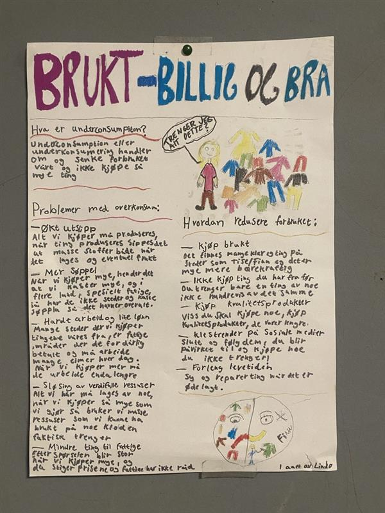 Det har blitt jobbet tverrfaglig i norsk og kunst & håndverk der elevene har laget plakater om bærekraft, og om tiltak man kan gjøre for å handle mer bærekraftig. I arbeidslivsfag og i norsk fordypning har også elevene laget kampanjeplakater om #Underconsumption.